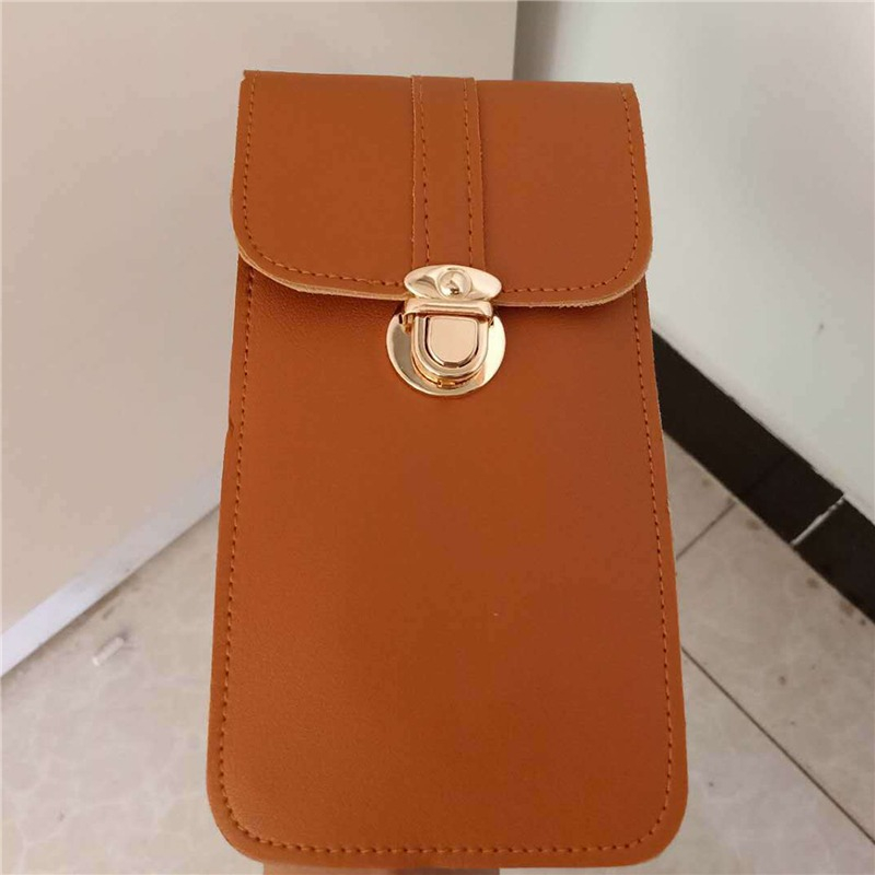 Women’s PU Leather Phone Holder With Neck Strap Wallets Touch Screen Bags (Brown )