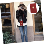 Women’s PU Leather Phone Holder With Neck Strap Wallets Touch Screen Bags (Red)